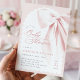 Pink Bow Elegant Baby Shower Invitation. This elegant invitation features a charming blush pink bow and romantic handwritten script, perfect for a whimsical baby girl shower. The chic ribbon and preppy design add a touch of sophistication, while the editable template allows for easy customization. Create a beautiful and memorable invitation for your special event.