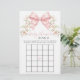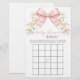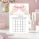 Sophisticated classic "Bingo" game designed for a baby girl shower, adorned with a charming blush pink coquette bow surrounded by pink spring summer flowers. Engage your guests with this delightful game, perfect for adding fun and excitement to your winter celebration while creating cherished memories.