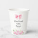 Toast to the mama-to-be with these lovely Pink Bow Floral Baby Shower Party Cups designed to match your party theme. Each cup features the iconic pink bow at the top with beautiful florals at the bottom. The design is featured at the front and back of the cup. In the center, you can add your personalized touch. Perfect for drinking apple cider, fruit punch, or whatever you choose!