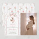 Pink Bow & Floral Bunny Baby Shower Photo Invitation