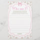 Pink Bow Floral Qui Suis-Je Carte De Jeu De Douche