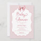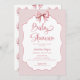 Elegant pink Bow girl Baby Shower Invitation. Beautiful charming, pink scripted calligraphy with painted ribbon and bow pattern on the back.