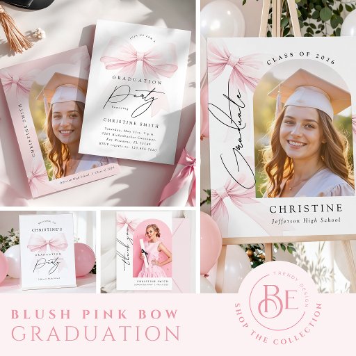 Charming graduation favor tags designed with a delicate pink bow and graceful typography. Perfect for labeling favors, gift bags, or small keepsakes, these tags add a refined and cohesive coquette detail to your graduation party decor.