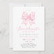Celebrate the arrival of your little sweetheart with this charming baby shower invitation! Featuring a delicate pink bow adorned with playful watercolor hearts, this design perfectly captures the sweetness of a Valentine-inspired theme. Whimsical touches and modern script typography combine for an elegant yet trendy look. With soft pastel hues and a coquette aesthetic, this invitation sets the tone for a heartfelt celebration of love and new beginnings. Fully customizable, it’s the perfect choice for welcoming a baby girl in style.