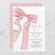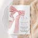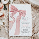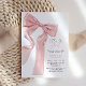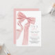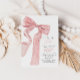 Celebrate the upcoming arrival of a sweet baby girl with this elegant pink bow-themed baby shower invitation. Featuring a soft pink colour palette, a delicate satin bow design, and customizable text, this invitation is perfect for setting the tone for a memorable event. Personalize with your details for a truly unique touch. Ideal for traditional or modern baby showers!