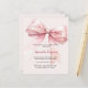 A girly blush pink background, decorated with a large pink bow. Personalize and add a name and party details.