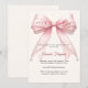 An elegant soft ivory background, decorated with a large pink bow with pearls. Personalize and add a name and party details.