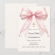 Pink bow ivory pearls girl elegant Confirmation Invitation