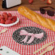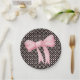 These elegant paper plates are the perfect finishing touch for any classic preppy baby shower or event. The soft pink bow is accented with a white background and a monogram of your choice. Hearts and bow black background.