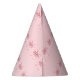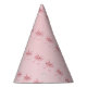 Soft pink party hats featuring an elegant repeating bow pattern with a delicate watercolor look. Perfect for girls’ birthday parties, pastel celebrations, princess themes, chic kids events, and stylish party table décor. A timeless and customizable design ideal for modern birthday celebrations.