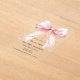 A clear, transparent background, decorated with a pink large bow with pearls and a golden cross. Personalize and add a name and details details.