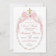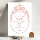Pink Bow Pearls First Holy Communion Invitation, Boho Floral Holy Communion Cross Christening Invitation, Catholic Primera Communion