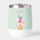 A trendy sage green background decorated with a pink bow and a pineapple. Personalize and add a name and your monogram initials.