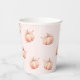 This elegant and charming baby shower paper cup features a beautiful pumpkin pattern with a delicate pink ribbon and a pale pink background