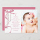Pink Bow & Rosary Photo First Holy Communion Invitation
