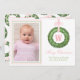 Pink Bow Sash Christmas Monogram Wreath Holiday Card