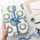 Pink Bow Sash Christmas Monogram Wreath Wrapping Paper