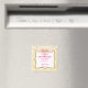 It was a bit smaller than expected, but I was too excited to check dimensions. The product itself send well printed though the grey text is a bit paint. Magnet worked perfectly on my fridge.