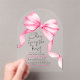 Chic, feminine, and truly unforgettable — this acrylic bridal shower invitation adds a modern, luxe twist to your celebration. Featuring a soft blush pink watercolor bow that gracefully ties into the theme, it beautifully symbolizes the moment the bride-to-be is about to "tie the knot."