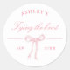 Pink Bow Tying The Knot Favour Classic Round Sticker