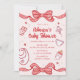 Pink Bow Whimsical Hand Drawn Girl Baby Shower Invitation