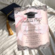 Elegant black graduation cap, pink bow, and your photo on a rose gold background. Perfect for graduates who love a chic and stylish aesthetic, these invitations set the tone for an unforgettable event.