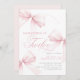 Pink Bows Twelve Birthday Invitation. Showcasing a delicate blush pink watercolor bows and elegant script typography, this design captures a sense of refined beauty and charm. The clean, minimalist layout adds a touch of sophistication, while the fully customizable text lets you tailor every detail to create a unique and memorable birthday invitation.