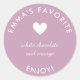 Un autocollant simple pour les faveurs de mariage avec "Le favori de la mariée" écrit en blanc sur un arrière - plan rose simple. L'idée est que vous utilisez ces autocollants pour décorer vos faveurs de mariage en donnant, par exemple, deux barres-bonbons ou des bouteilles miniatures d'alcool qui sont les favoris du couple mariage. Cela fonctionnerait également bien pour décorer son cocktail préféré, dans le cadre d'un buffet de bonbons ou pour décorer des boîtes de cupcakes/desserts. Vous pouvez modifier la couleur de l'arrière - plan à votre convenance et modifier le texte pour qu'il corresponde à l'élément que vous utilisez, y compris l'orthographe de votre choix de "favori". Vous pouvez également changer le "savourez" en un petit message de remerciement ou le supprimer entièrement pour faire plus d'espace pour décrire votre objet. Vous pouvez également changer le nom en "favori de la mariée" ou "favori de la mariée" si vous préférez.