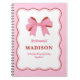 This pink bridesmaid bachelorette notebook is a fun and stylish way to surprise your bridal party, featuring wavy squiggle accents and a delicate bow. Perfect for bridesmaid gifts or proposals, the notebook can be personalized with a name in an elegant script. It's a thoughtful and practical keepsake for your bridesmaids to use throughout the bachelorette and wedding planning journey.