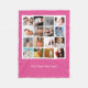 Photo Collage Mosaic Personalized fleece blanket from Ricaso - change the background colour by clicking on customize or leave as a bright pink