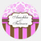 Pink Brown Damask Stripe Wedding Sticker