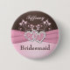 This personalized pink and brown floral Bridesmaid button with a PRINTED pink ribbon and a pair of PRINTED FAUX glitter and diamond jewel joined hearts brooch on it matches the wedding invitation shown below. The text is customizable and so is the shape and size of the button. ****PLEASE note that if you change the shape the text may get cut off. It will print as it appears on your monitor, and you must allow adequate space around the edges, so do NOT run text right up to the edge. If you need anything changed, please email niteowlstudio@gmail.com.