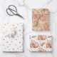 Trio Pink Brown Christmas Gingerbread Houses Men Stars Hearts Cinnamon Wrapping Paper Sheets.