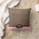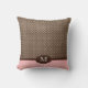 This very large 20x20 square stylish chic pillow has a pink and chocolate brown polkadots pattern at the top with a soft pink stripes pattern separated by an easily personalized monogram badge. The backside has the pink and brown polka dot pattern.