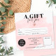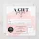 Modern abstract pastel blush pink watercolor brushstroke simple square gift certificate, add your logo, with a rose gold heart. Perfect birthday or Christmas gift certificate voucher.