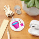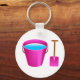 Illustration of a bright pink colored beach bucket filled with water and a matching spade for the summer holidays. Easily customize and choose your own background color. Image available on various gifts and products.