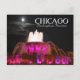 The beautiful Buckingham fountain lit in pink lighting in downtown Chicago at night with full moon. Personalize this postcard if you wish.