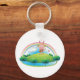 Pink bunny playing a guitar atop of a hill with a rainbow. This design looks really effective on these Keychain