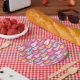 Great accent for an outdoor summer party. Bright colors, vibrant floral design