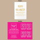Horror, scary, spooky, creepy, ghost, monster, skull, pumpkin and so on. Happy Halloween! Holiday to celebrate this October. Holiday to scare but not to scare customers or clients. One of the holidays to celebrate and to advertise also your business or to promote your brand name to customers or clients. Customizable foil card that you can put your business brand, your products or services and with Halloween greeting. You can put up to 4 products. Customize it and use it as marketing material to advertise your brand name and to promote your business products or services. Foil card that you can use to build brand name awareness. Design colours are gold foil texts on front side and in the inside are white texts on pink background. To customize this foil card, upload your business logo, images of your products or services, type your business name, short attractive description of your business and products or services, names of your products or services, address, phone number, e-mail and website or your business social media page. Please check the appearance on all sides after uploading logo, images and typing texts. If the appearance is pleasing to you, you can place your order now. If you need to resize and move the logo, images and texts to fit on this card, please change in the design tool. You can also make other changes according to the appearance of this card that you prefer in the design tool such as changing the background colour, font colour and font style. Happy Halloween! Wishing you more sales this holiday.