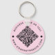 Customizable QR Code keychain, with a pink background. To generate a new QR code on the design, add your website URL or social media handle in the " personalize this template" feature.