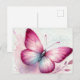 This elegant watercolor postcard features a pink butterfly above a botanical branch. Rendered in vibrant fuchsia and soft pastel hues with gradients and fine detailing, the feminine insect artwork is perfect for nature lovers, garden enthusiasts, and stationery collectors.