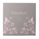 Sweet and dainty Butterfly Floral Tile with a muted dusty grey background and light pink butterflies and floral vine embellishments. This elegant floral tile would complement any decor! Easy to customize, simply add the personalized text of your choosing in the text fields provided. Click on the "Customize It" button to find additional personalization options.