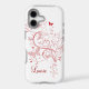 A delicate floral swirl in pink with pink and red butterflies on a white background makes a pretty case. Add your own name easily