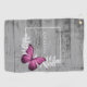 Personalize a unique towel for golfing with a Pink Butterfly Rustic Personalized Golf Towel. Towel design features a vibrant butterfly resting on delicate foliage with a space to add your name against a rustic wooden background. Additional gift items available with this design as well as a variety of colours.