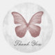 Elegant and simple Wedding thank you sticker featuring a pink butterfly against a grey grunge background. This design is a unique choice for a modern wedding. Easy to customize with your wedding details. Click "Customize It" to find more personalization options.