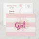 Pink Cabana Striped Baby Announcement Postcard
