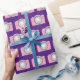 pink cameras on purple wrapping paper