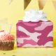 These girly camo wrapping paper feature a camouflage pattern in shades of dark pink and pale pink.