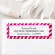 Add a festive and personalized touch to your baby shower mailings with this pink candy cane-themed return address label. Featuring a modern diagonal stripe border in pink, green, and red, it’s perfect for holiday baby showers or wintertime celebrations. A cheerful way to dress up envelopes with holiday spirit and custom charm!
